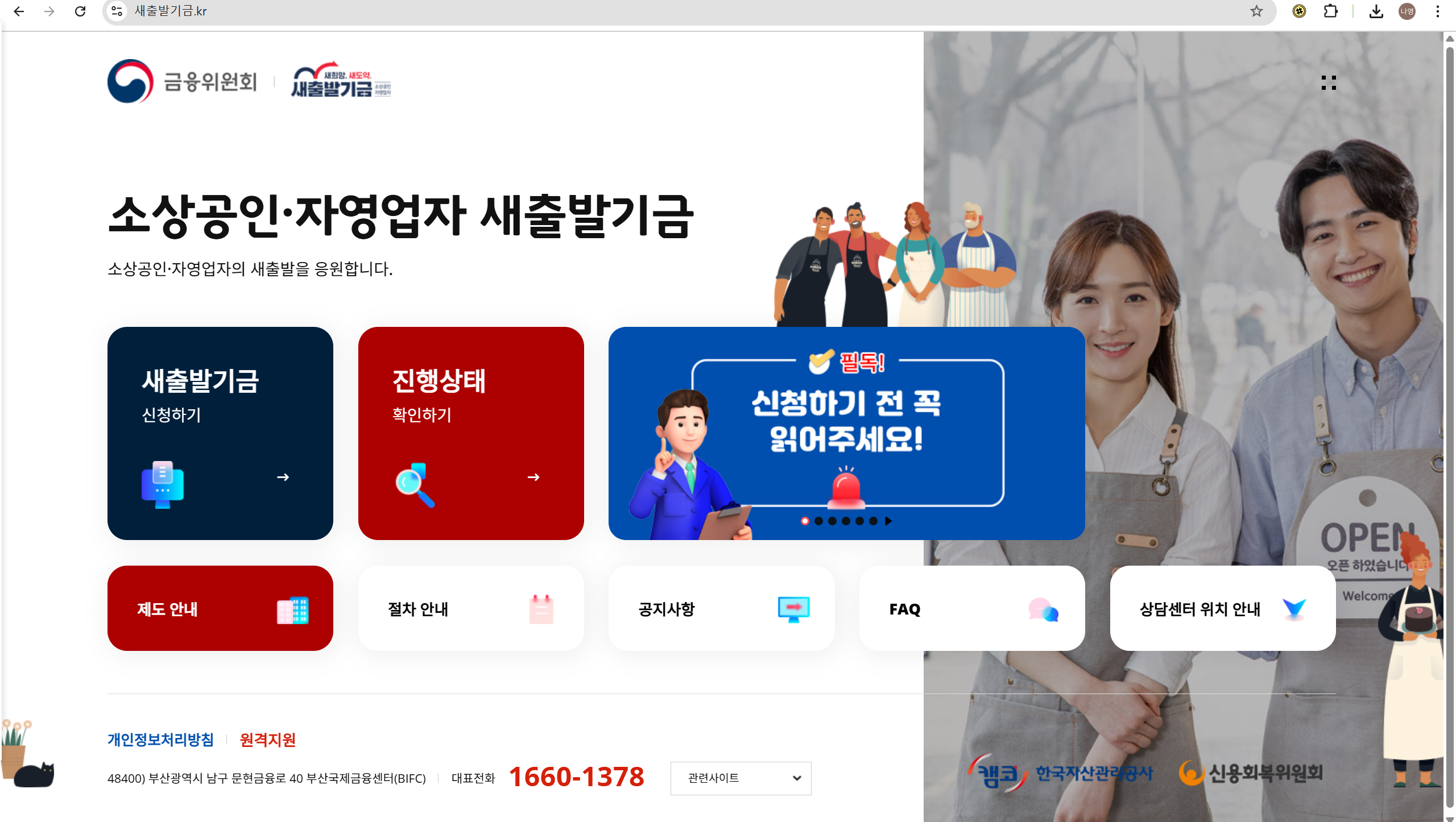 정부는 새출발기금 전용 홈페이지(https://새출발기금.kr)를 통해 비대면 신청을 받고 있습니다.